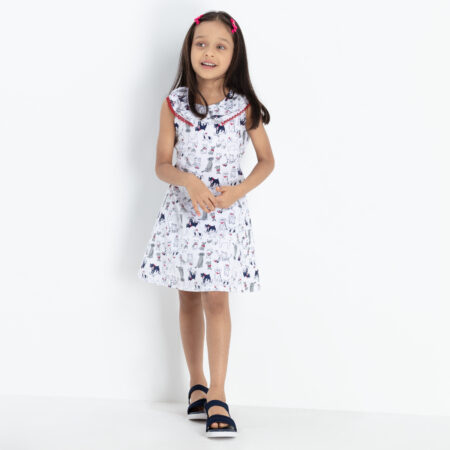 The dress features an array of charming dog prints, capturing the lovable essence of our furry friends. Each print showcases a variety of adorable dog breeds in playful poses, making it a perfect pick for young animal lovers. The whimsical design adds a joyful touch to the dress, ensuring it stands out with its unique and heartwarming pattern.